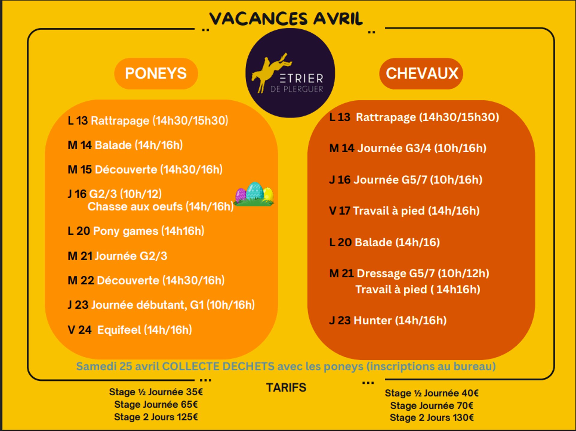 Planning Vacances d'Avril